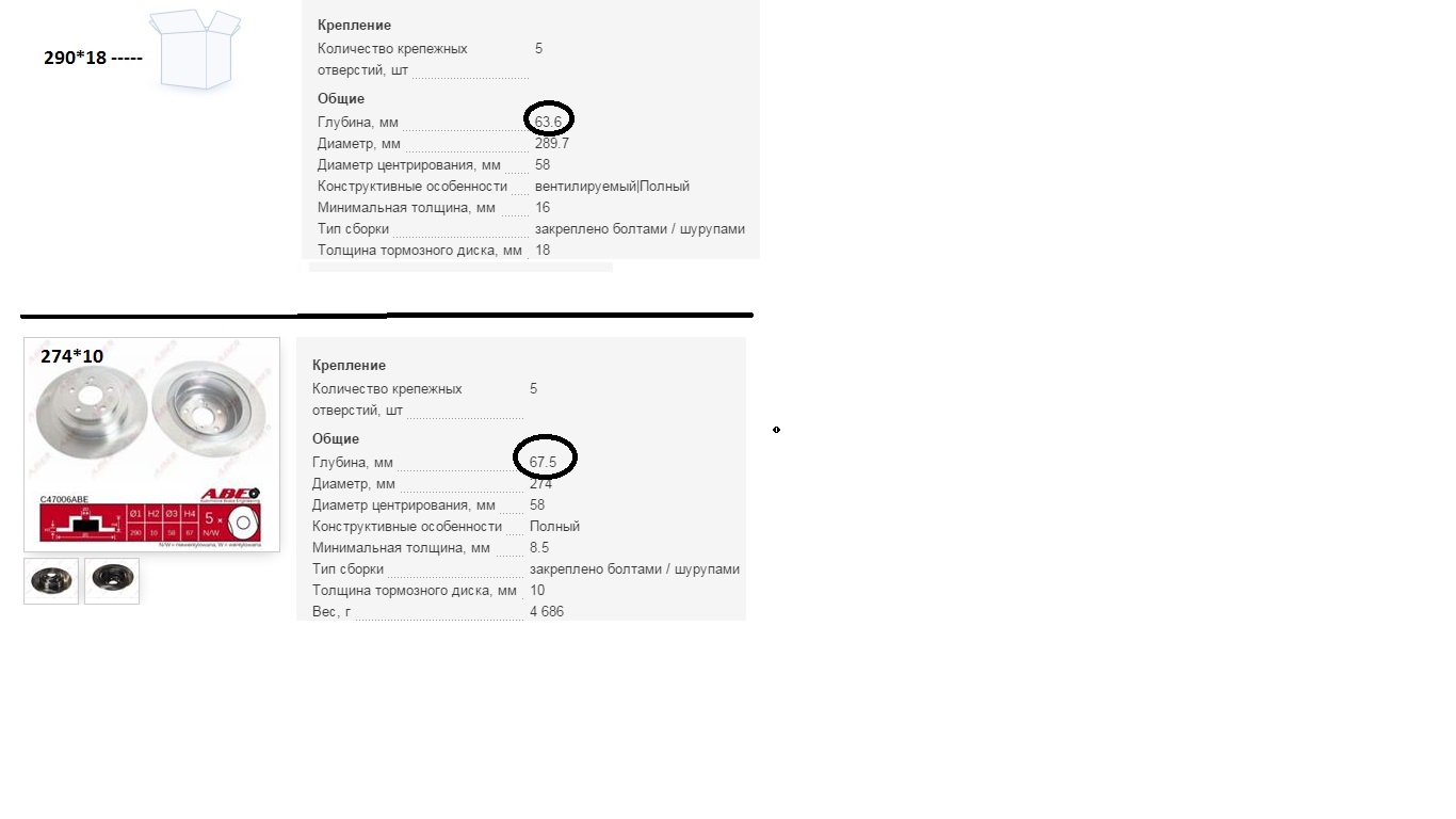 2. торм.диск 290*18 заводские номера 26700AJ010 высота 63,6 (64) мм (на 4, 2 мм меньше)
