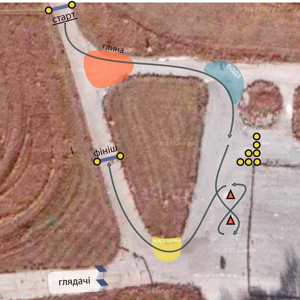 Будет подготовлен трек на старом Одесском аэродроме с различными компонентами для скольжения автомобиля при прохождении поворотов на дистанции. Такой себе мини дрифт, щадящий как резину, так и технику в целом.
