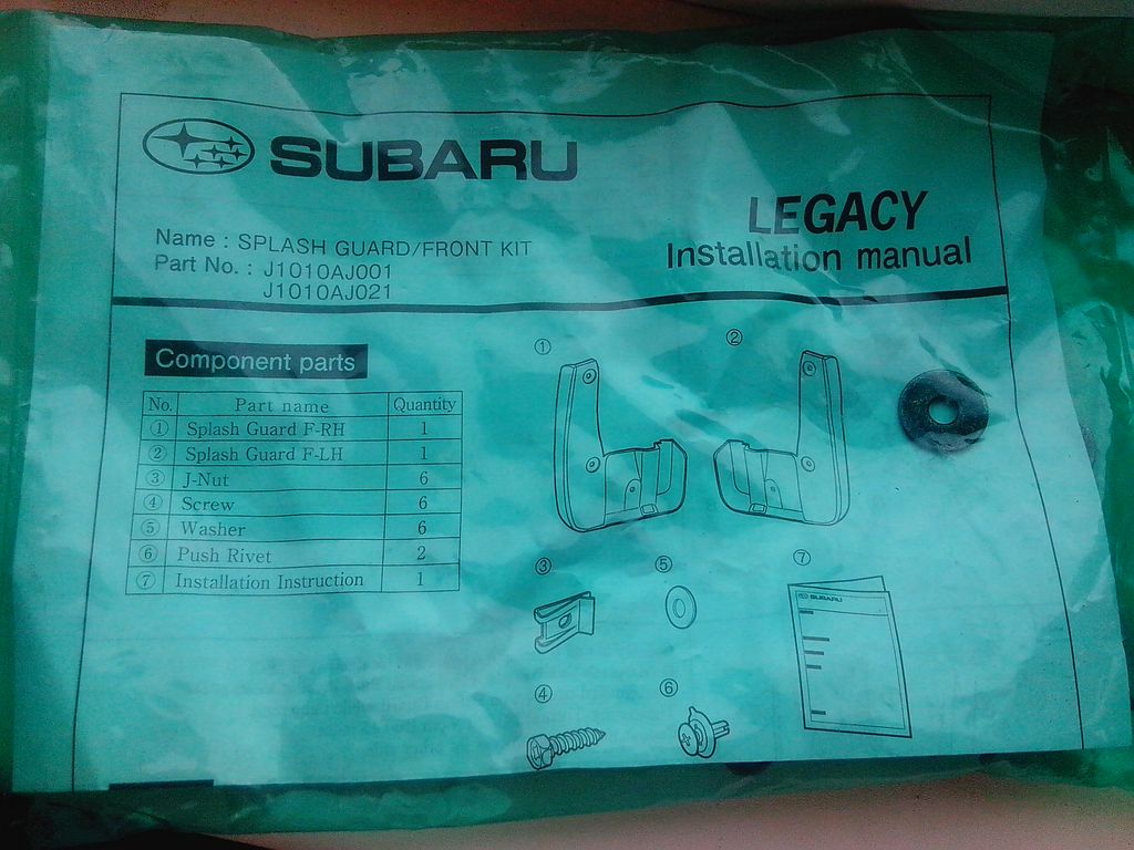 subaru splash guards парт j1010Aj021/j1010Aj001 ( на бумажке в комплекте, на брызговике не помню, уточню)