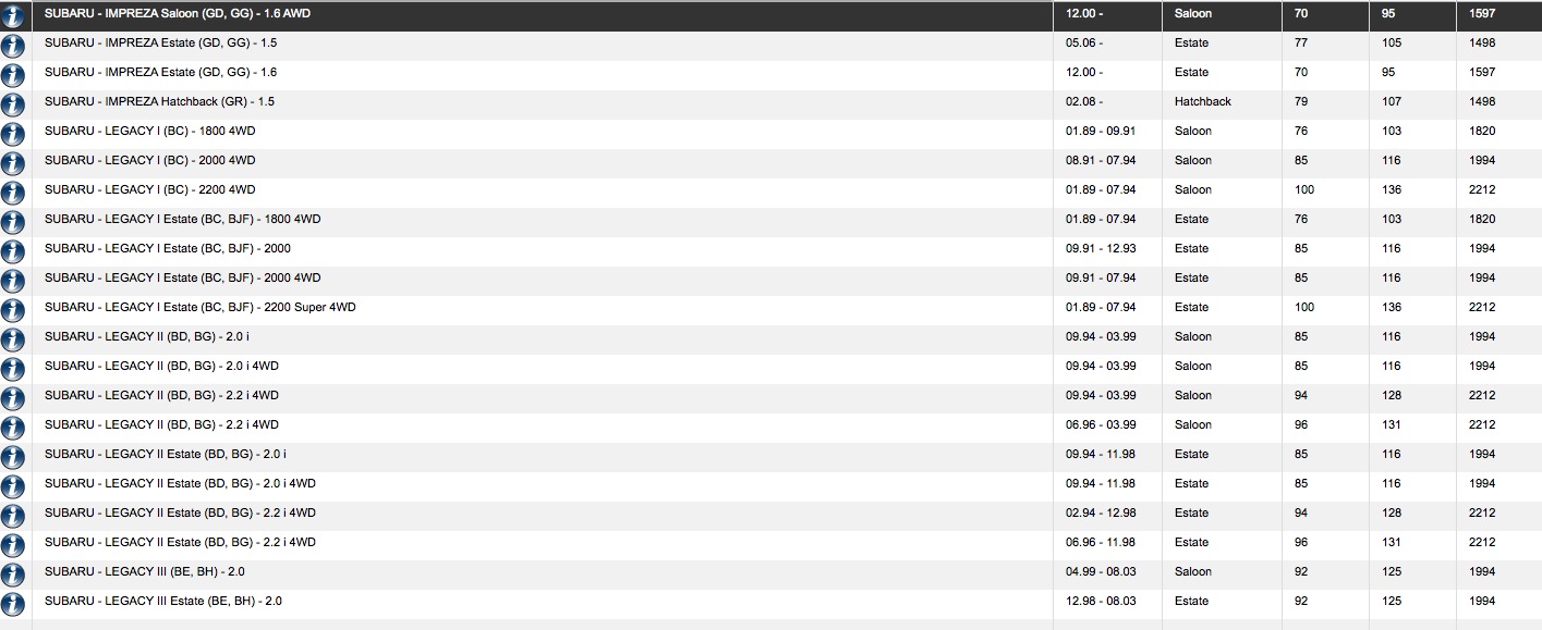 передн SUBARU: IMPREZA 92-00, IMPREZA купе 95-00, IMPREZA универсал 92-00, LEGACY I 89-94, LEGACY II 94-99, LEGACY II универсал 94-98, LEGACY III