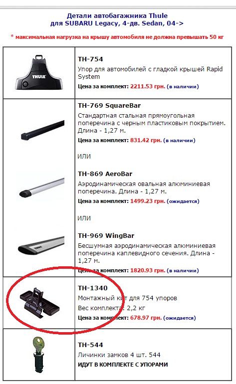 для уникнення непорозумінь, викладаю прінтскрін з офіційного сайту Thule того всього що необхідно щоби скласти повний комплект багажника на Легасі.