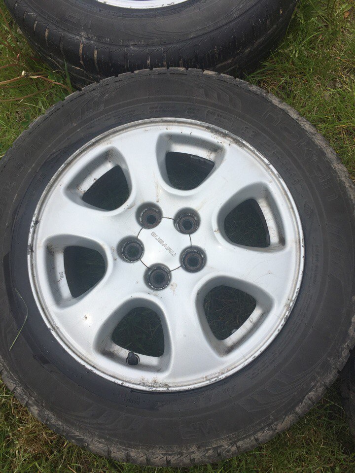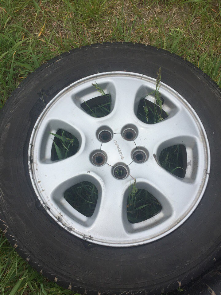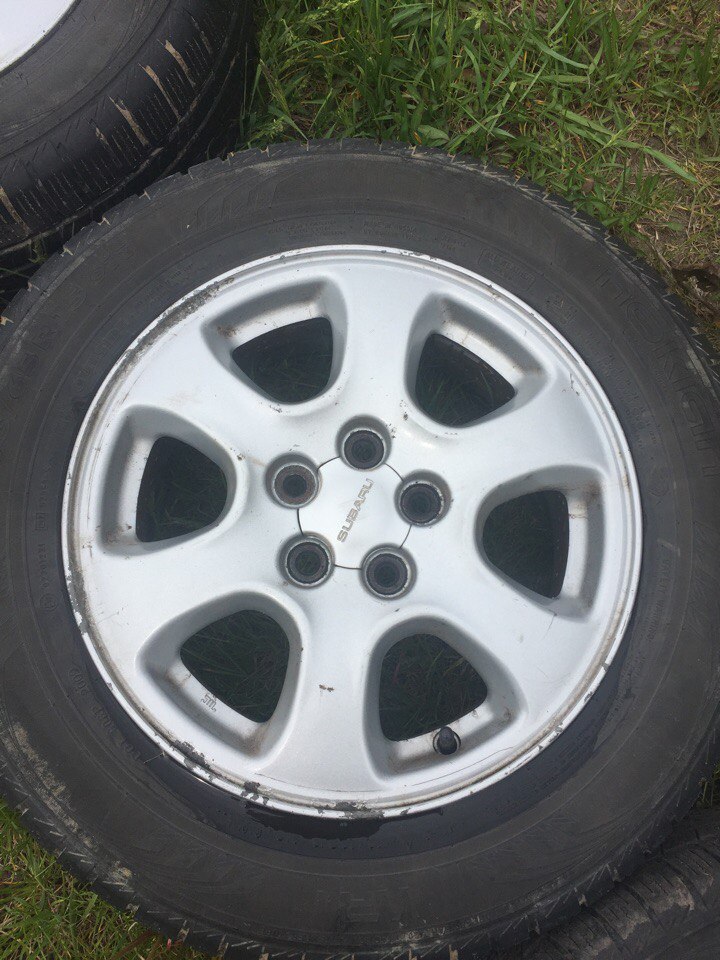 Вторые-15 Субару 5х100,вылет 55 на зиме нокиан 195х65.Не варились,не катались,косметическое состояние на 4(зимний комплект всё-таки)