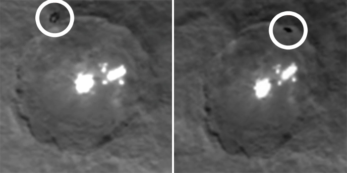 На снимках Цереры исследователи разглядели черный неопознанный летающий объект овальной формы.