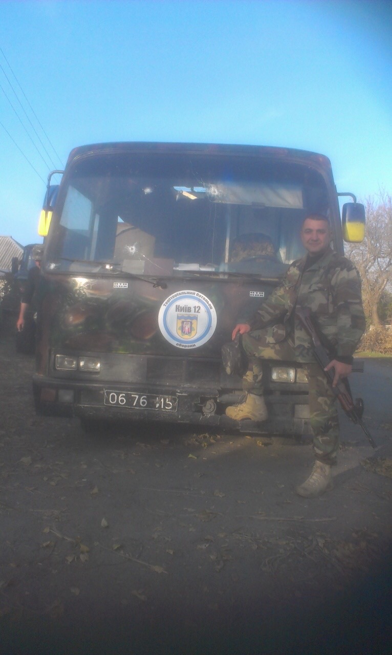 Сейчас уже месяц, он с 12-ым батальоном территориальной обороны Киева, в Луганской области (надеюсь, там тоже скоро будет мир и счастье). Под пулями и обстрелом града (мне страшно даже писать это). Знаю, что он главный по боеприпасам для роты (простите, что по девчачьи написала)). Вместо его любимой субару, сейчас у него боевая машина (Маршрутка Богдан) с дырками от пуль.
