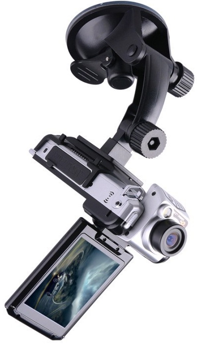 изнутри, в районе зеркала заднего вида, и питается от прикуривателя. Запись