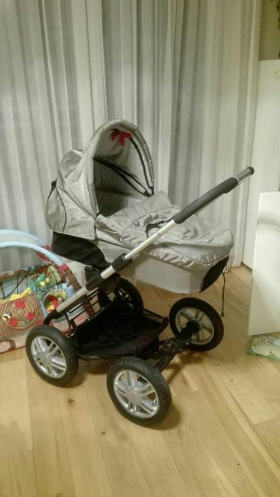 В комплекте люлька, прогулка и автокресло. Отличная коляска с хорошими колесами, подходящая для любих дорог.