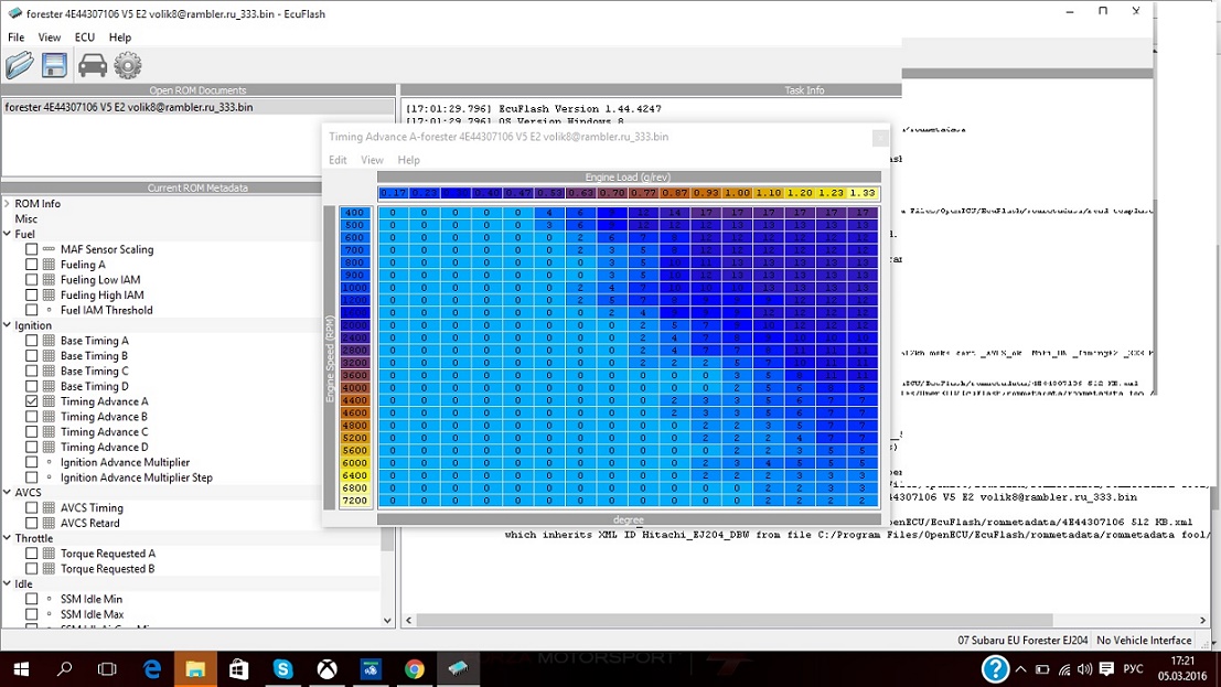 Первый опыт был тяжким... Подопытный вынужден был ездить с подменным ЕБУ (а это без АБС, ЕСП, Хилл-холдера, иммобилайзери и!!! Кнопки запуска двигателя...) Так как мозги были от Форестера 2007 года с этим же моторои... Но спустя месяц этого ананизма, Валера (а так его зовут, на форуме Volk1972) нашел как и слил мою прошивку, допилил ее до ума и залил обратно...