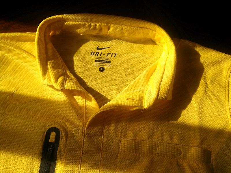 №1 Футблка на длинный рукав Nike dri-fit (ярко желтая) с воротничком типу "поло" и двумя нагрудными карманами (один на липучке, один на замке). Очень легкая, хорошо продувается. Цена 250 грн, размер "М" (полноценный)