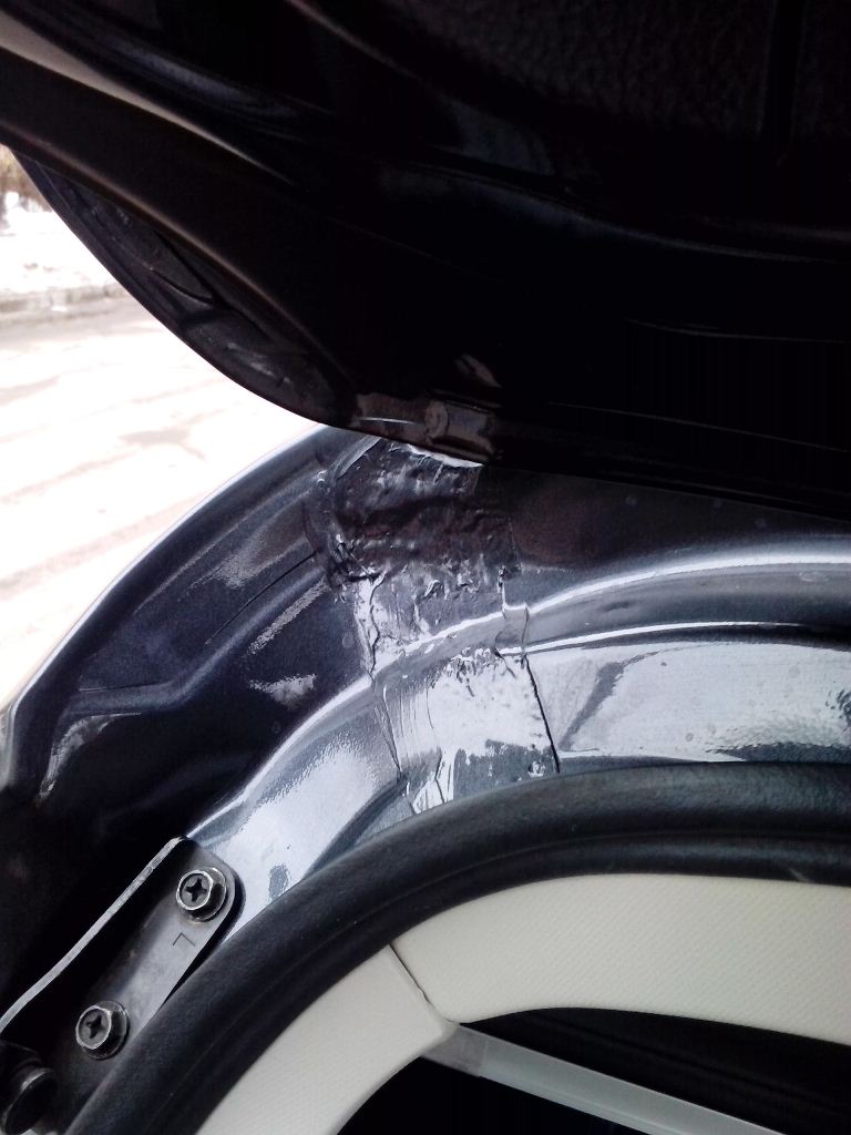 Вот так после гарантийного ремонта трещин кузова выглядит проем багажника