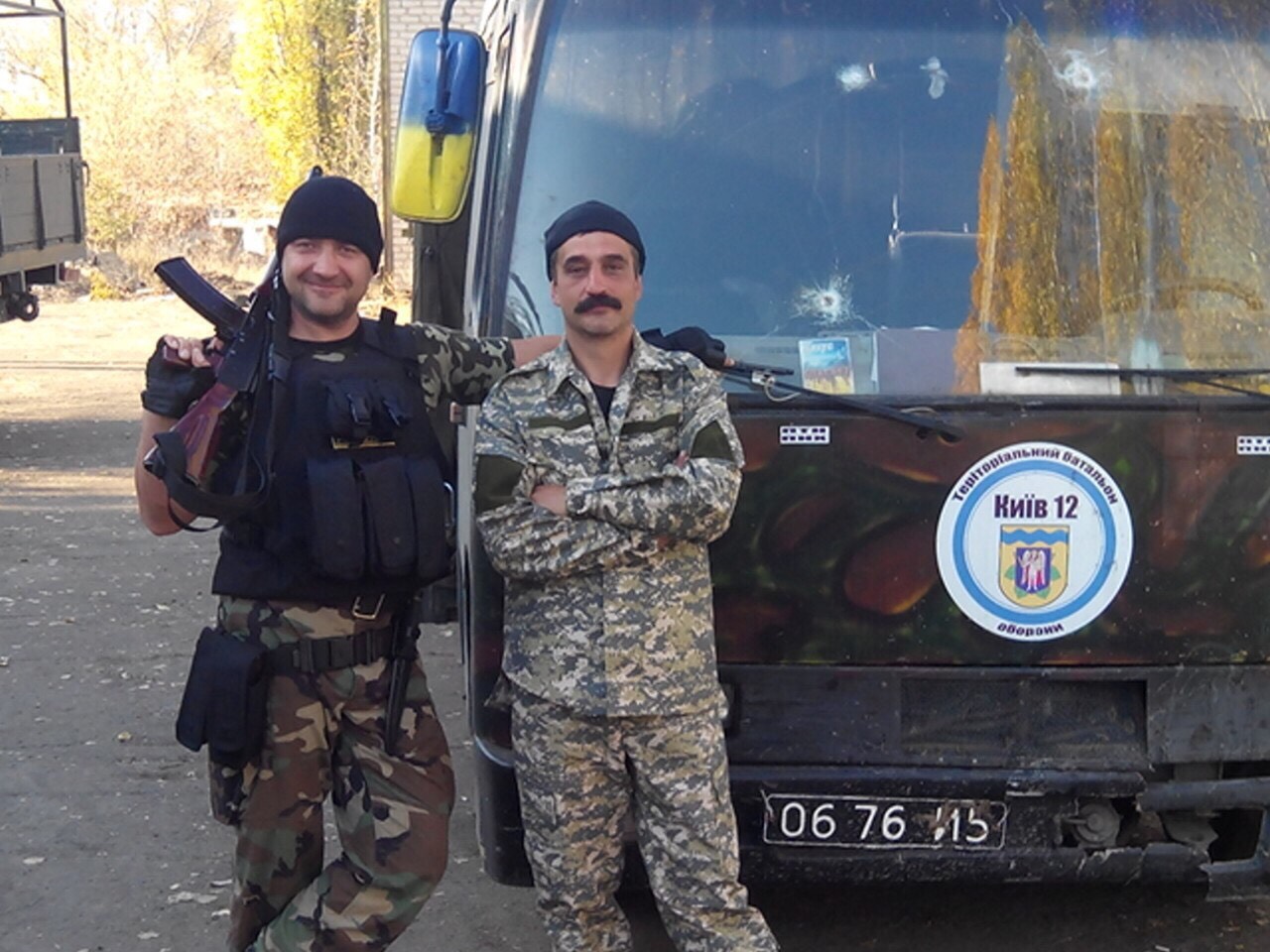Сейчас уже месяц, он с 12-ым батальоном территориальной обороны Киева, в Луганской области (надеюсь, там тоже скоро будет мир и счастье). Под пулями и обстрелом града (мне страшно даже писать это). Знаю, что он главный по боеприпасам для роты (простите, что по девчачьи написала)). Вместо его любимой субару, сейчас у него боевая машина (Маршрутка Богдан) с дырками от пуль.